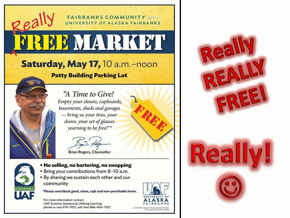 A few short days left to clean out your closets, sheds, and garages ... bring the things you don't want, need or have use for to the REALLY FREE MARKET, Saturday, May 17th, Patty Building Parking Lot.